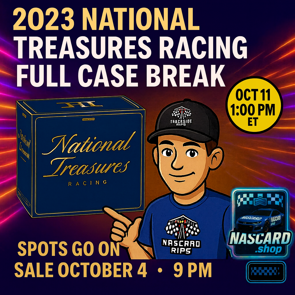 Join our bi-weekly live case breaks to score hits, autos, relics, and more! Watch the action unfold live, chat with other collectors, and claim your spot for exclusive NASCAR card pulls.