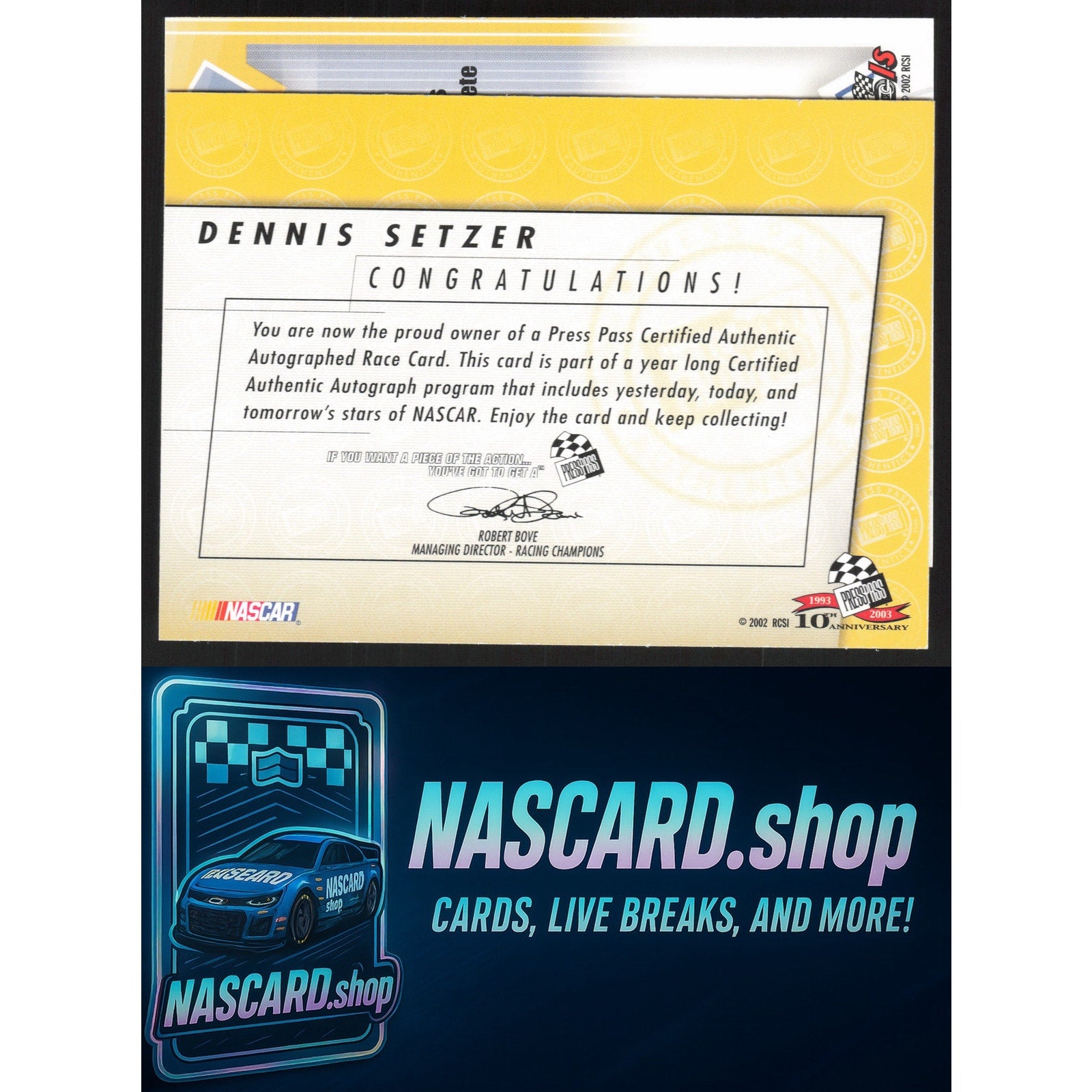 This is a nice example of a 2003 Wheels High Gear #NNO Dennis Setzer Autographs