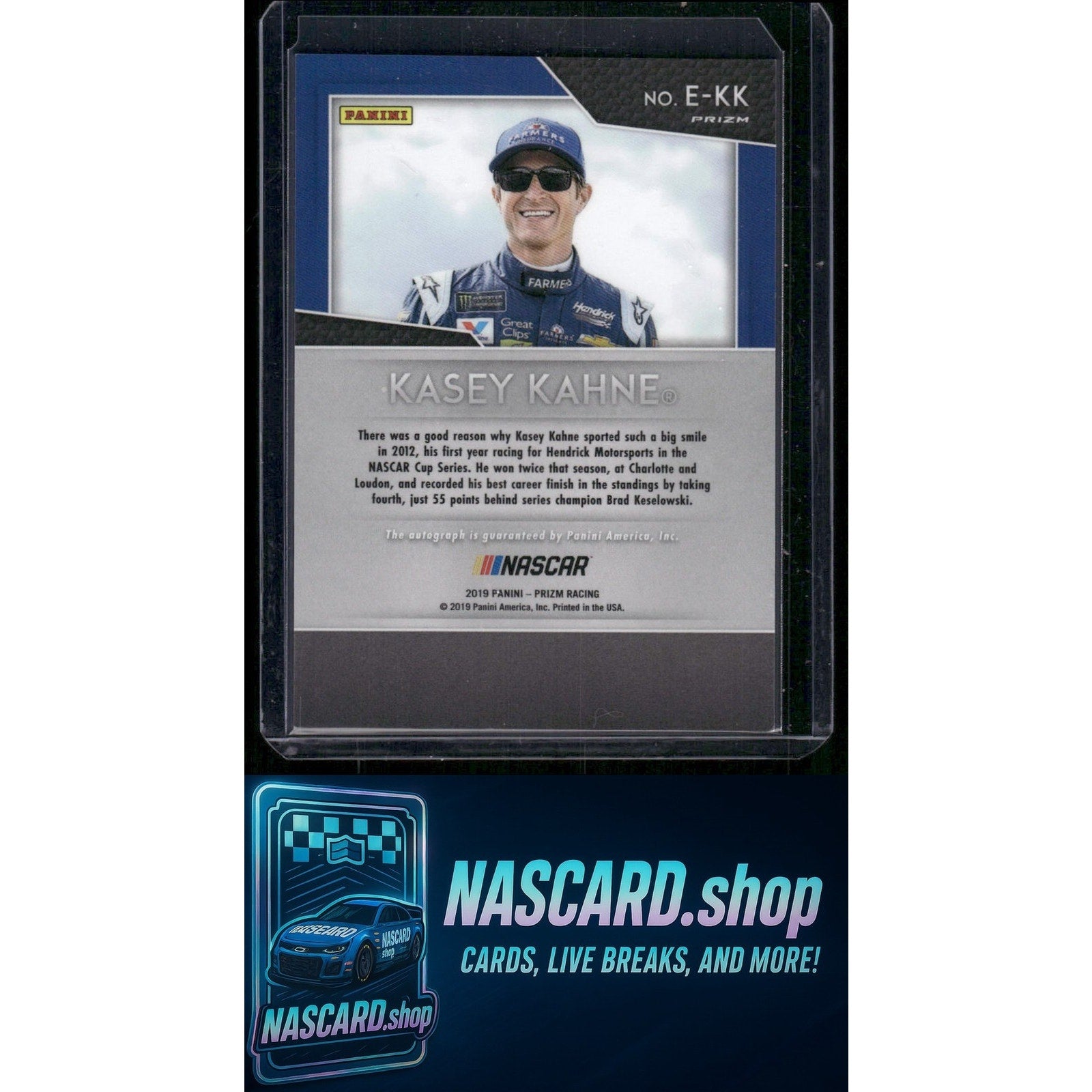 This is a nice example of a 2019 Panini Prizm #E-KK Kasey Kahne Endorsements Prizm