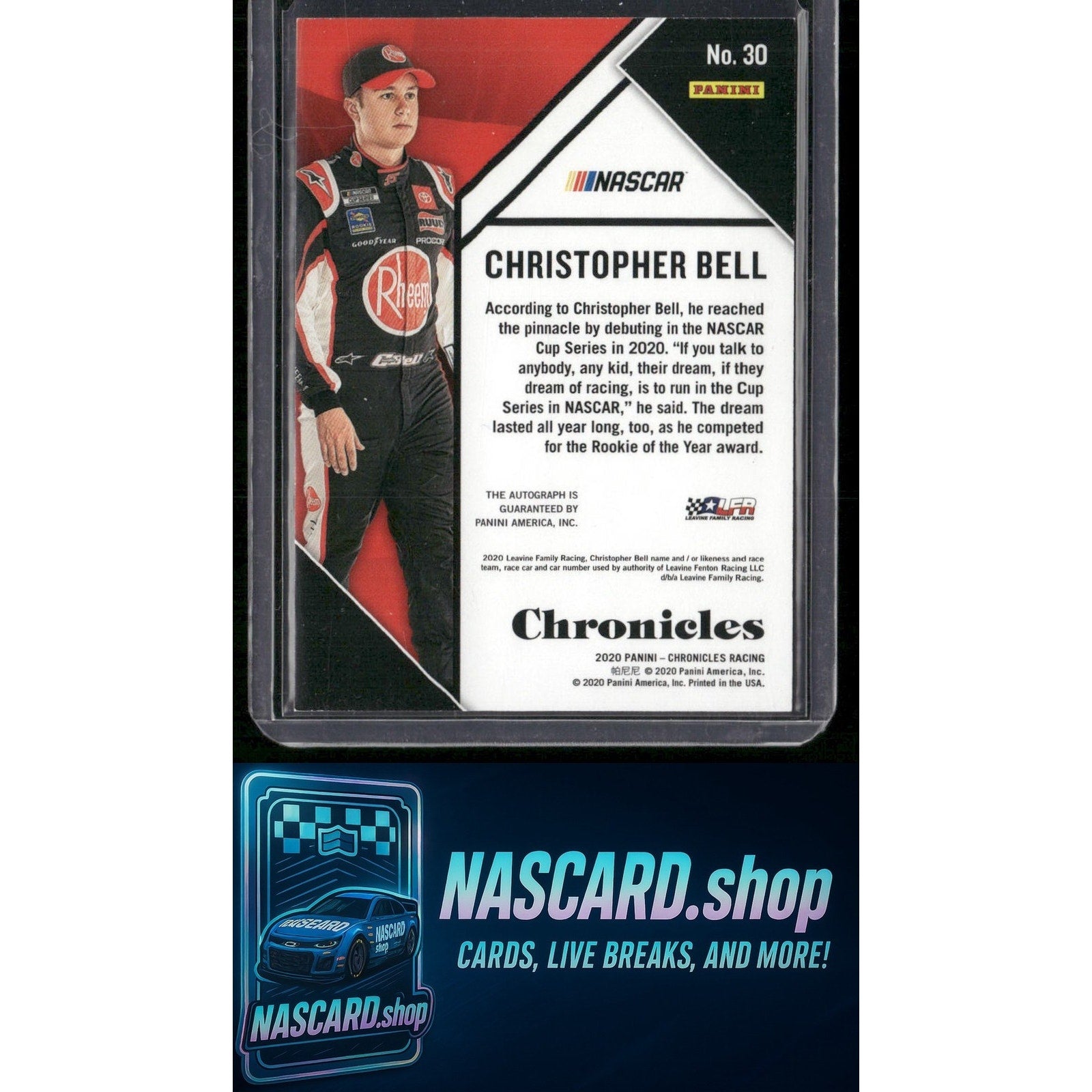 This is a nice example of a 2020 Panini Chronicles #30 Christopher Bell Chronicles Autographs