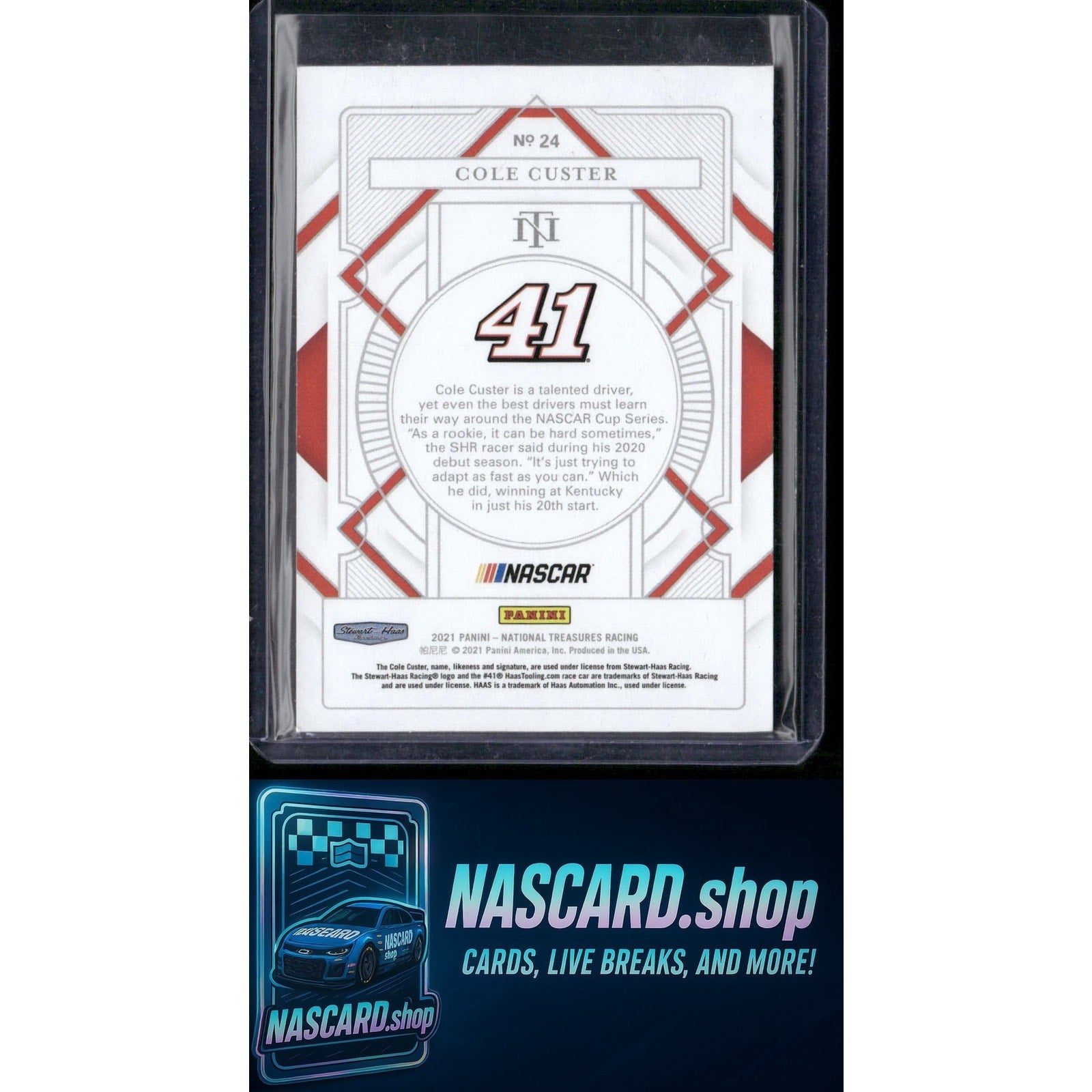 This is a nice example of a 2021 Panini National Treasures #24 Cole Custer Holo Silver