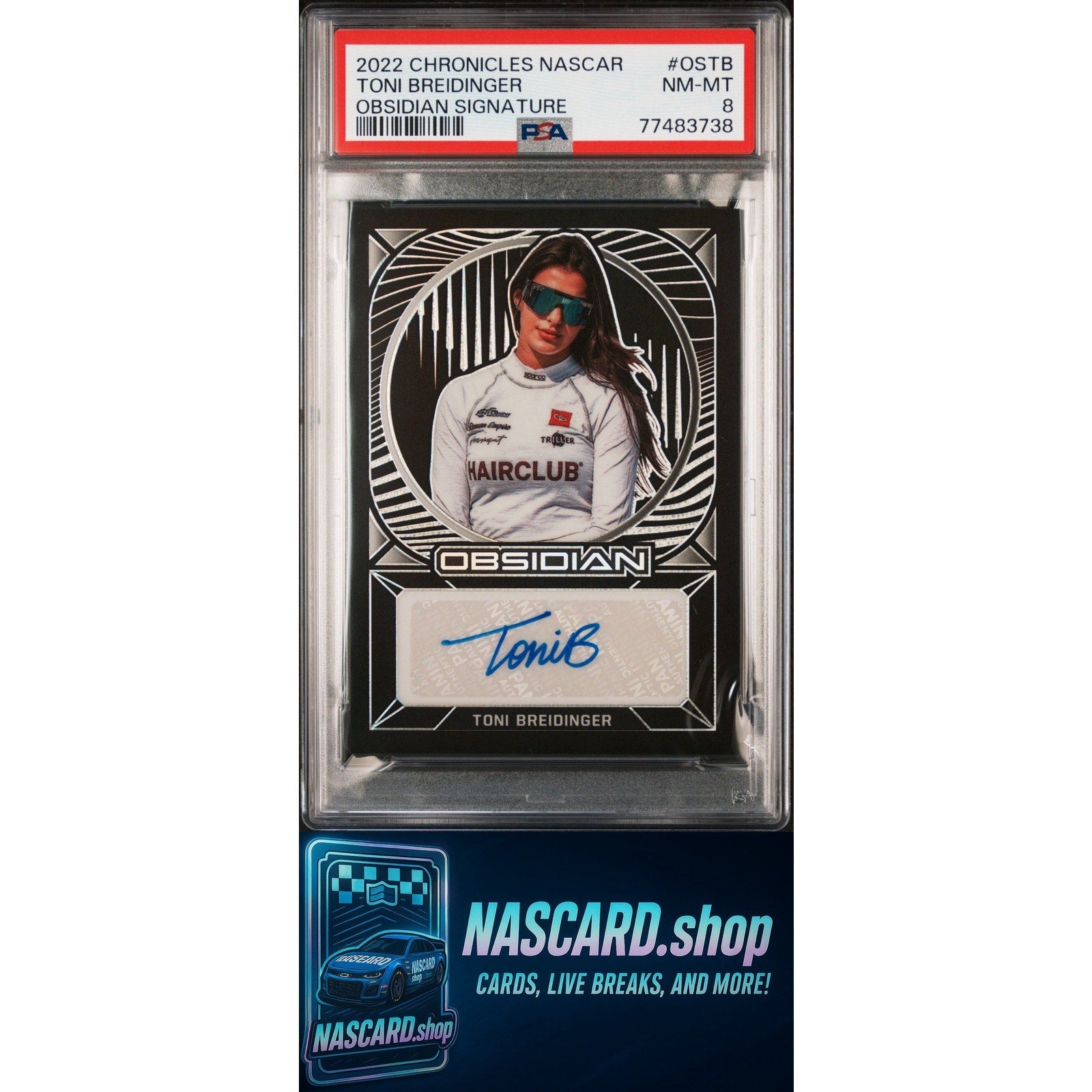 2022 Panini Chronicles NASCAR Toni Breidinger Obsidian Signature PSA 8