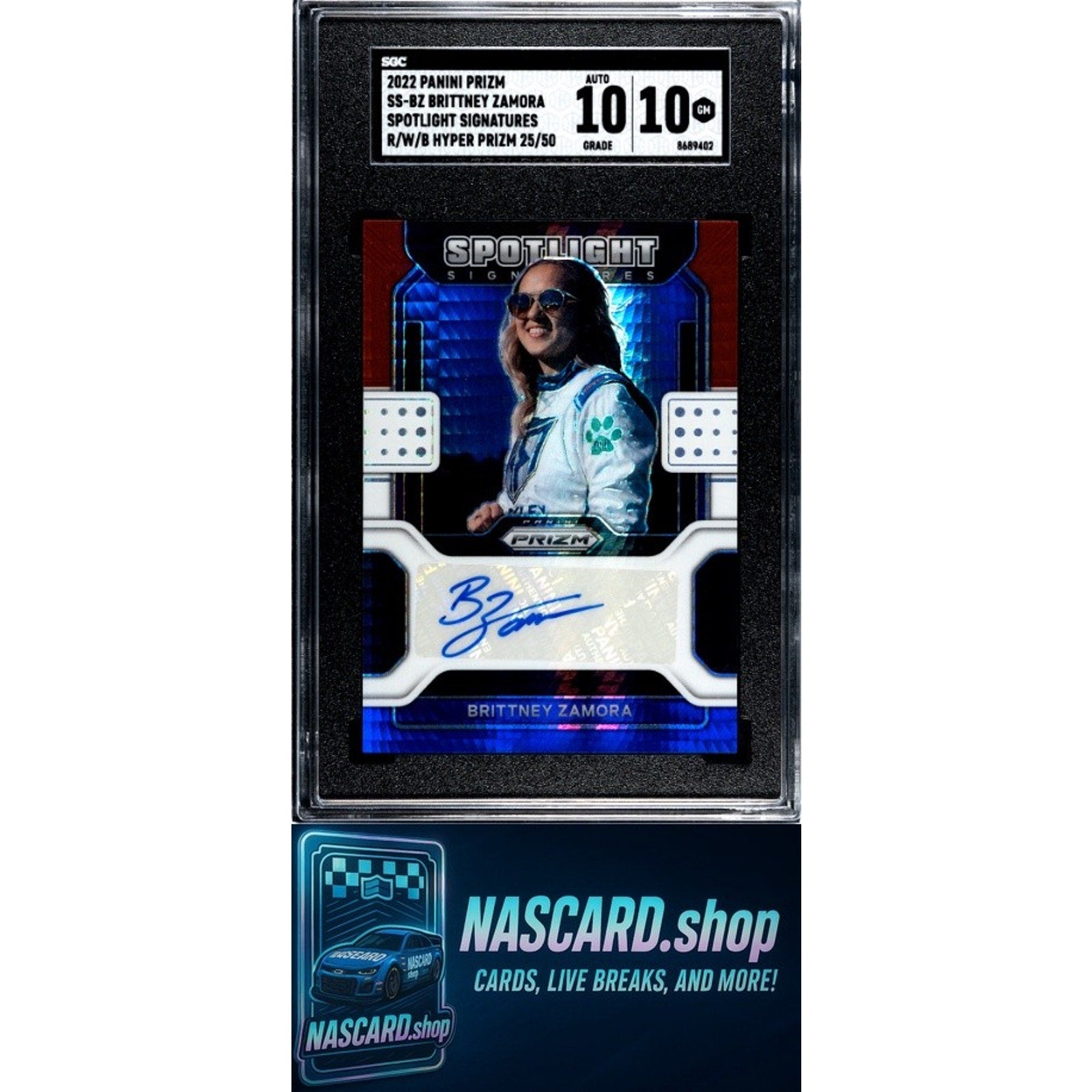 2022 Prizm Brittney Zamora Spotlight Signatures Red White Blue Prizm /50 SGC 10