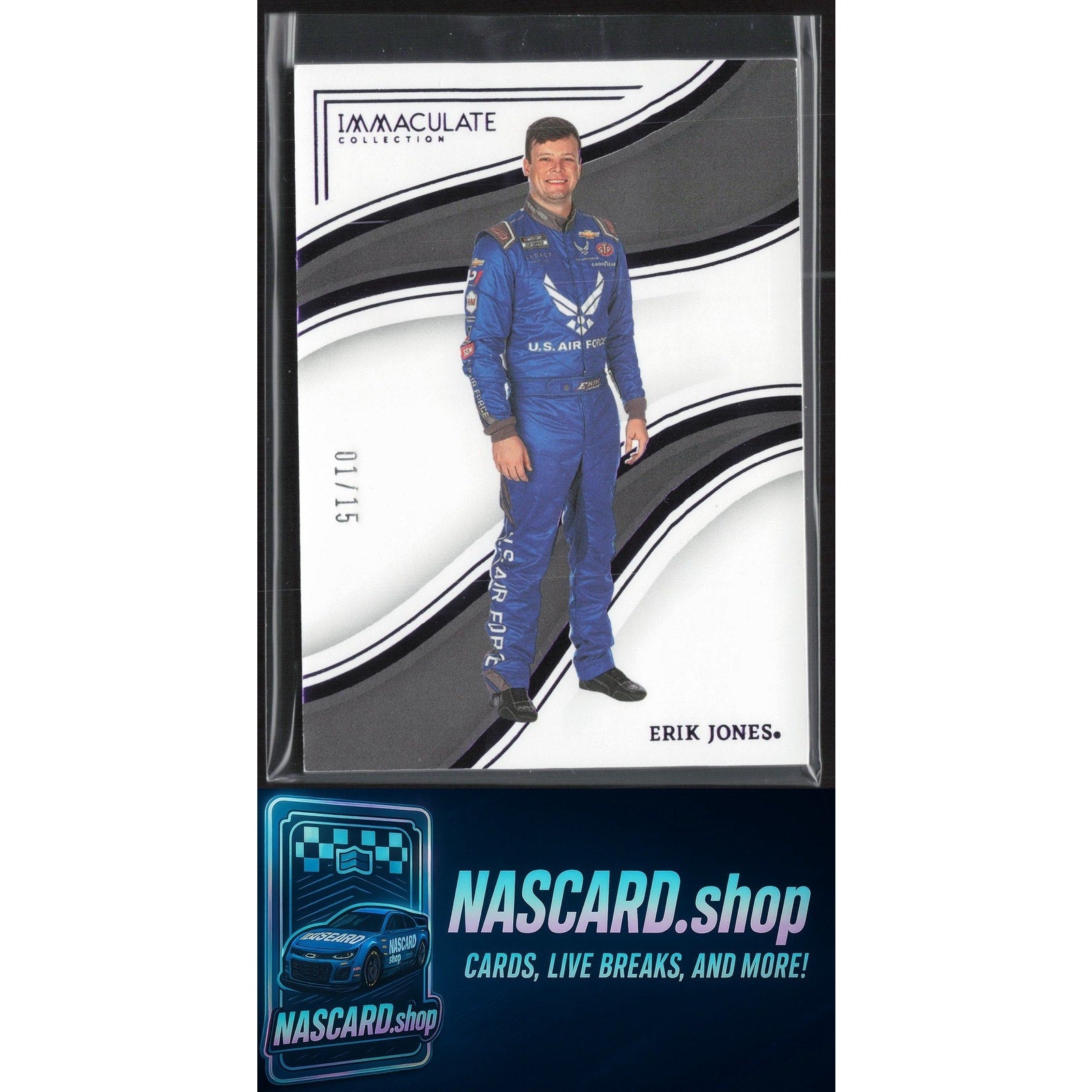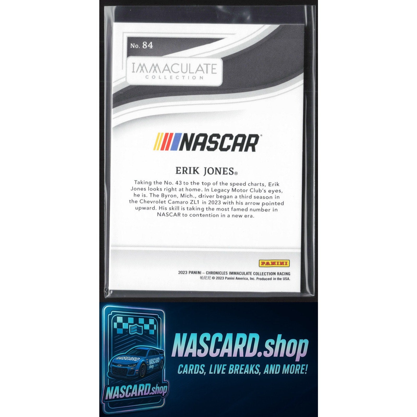 This is a nice example of a 2023 Panini Chronicles #84 Erik Jones Immaculate Purple