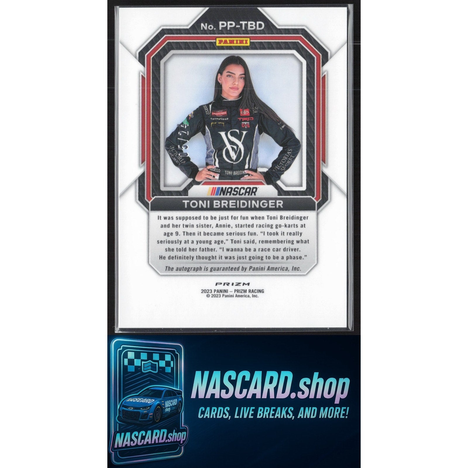 2023 Panini Prizm #PP-TBD Toni Breidinger Patented Penmanship Rainbow Prizm #/24