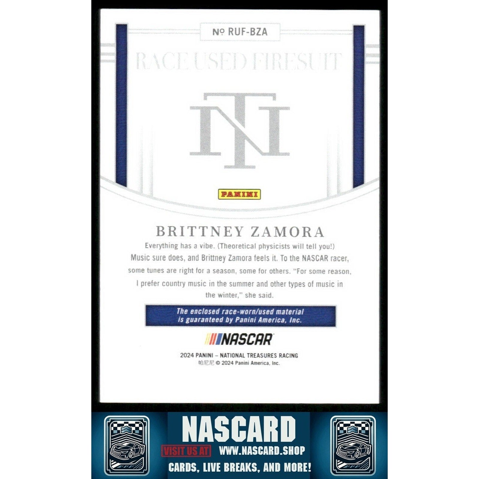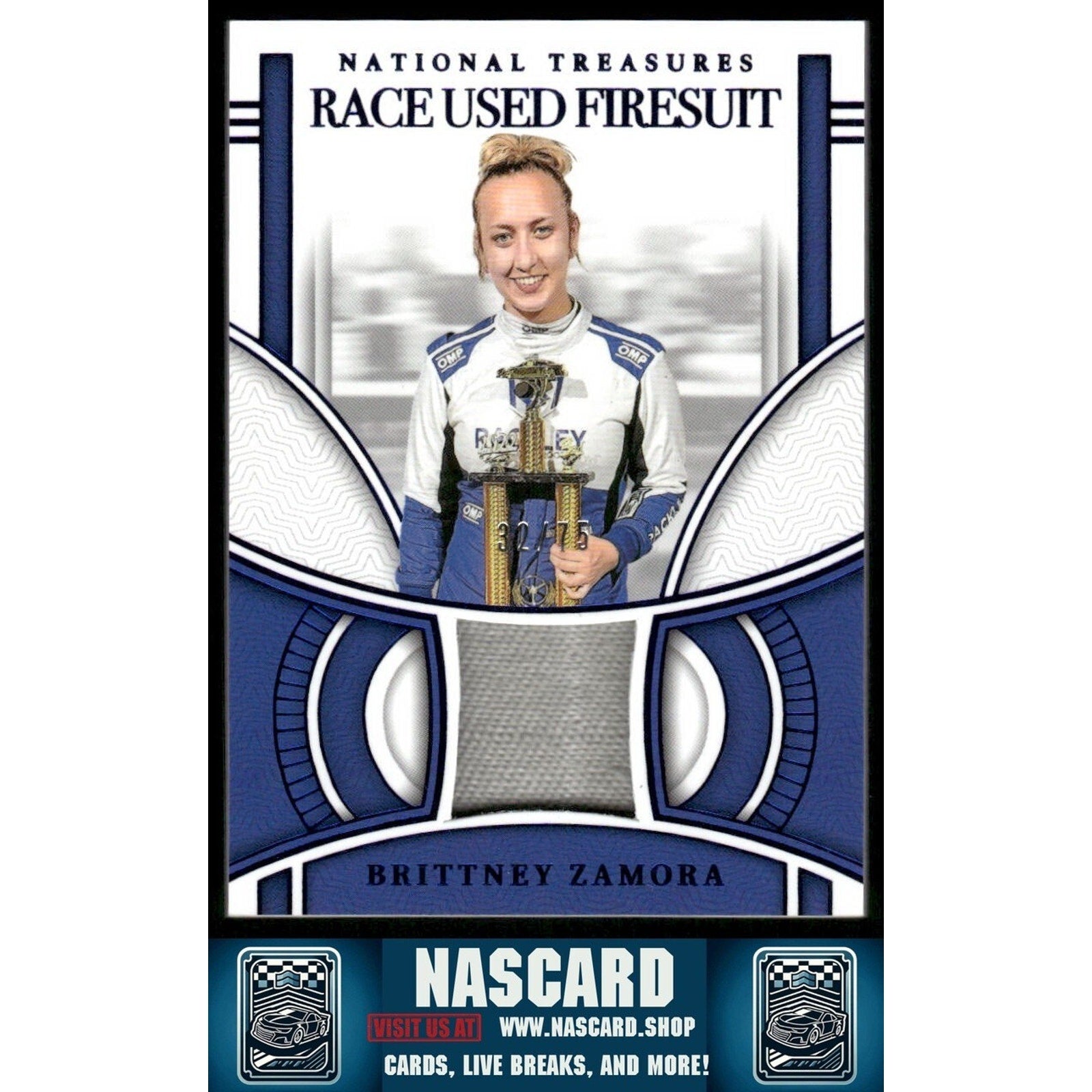 2024 National Treasures Race Used Firesuit Blue Brittney Zamora /75