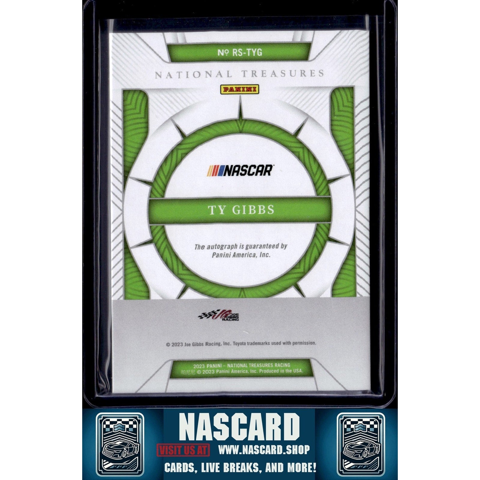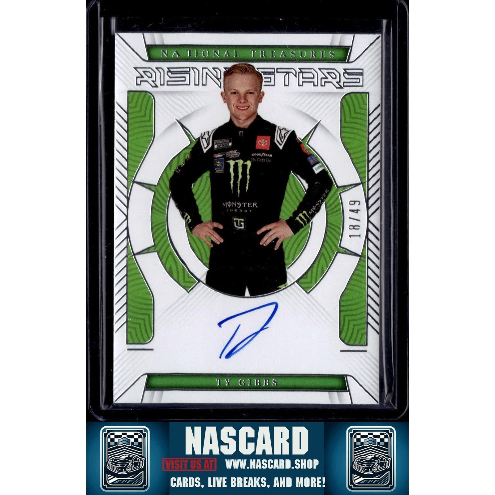 This is a nice example of a 2024 Panini National Treasures #RS-TYG Ty Gibbs 2023 Rising Stars