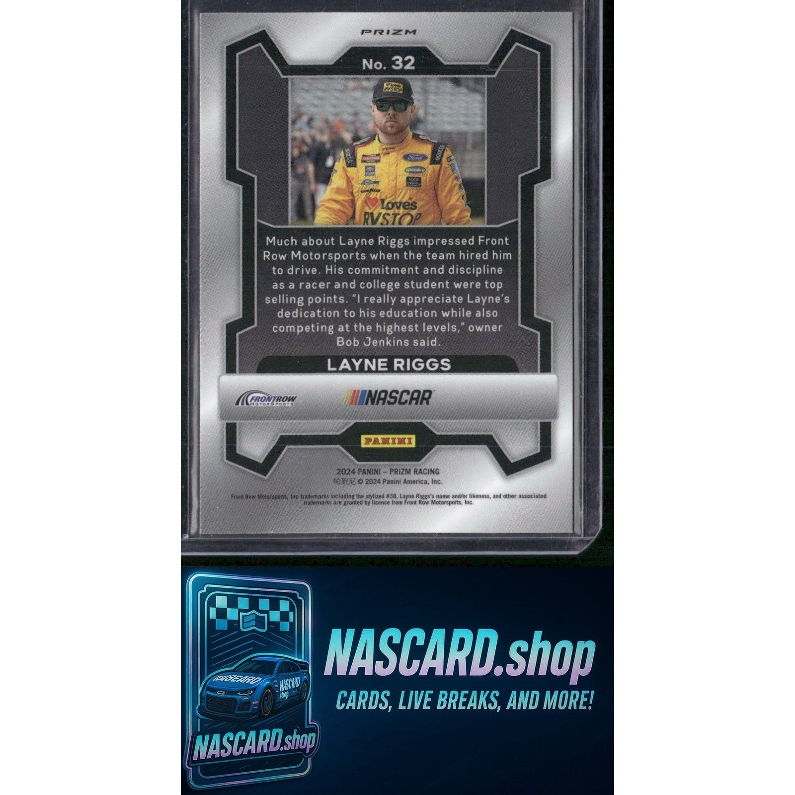 This is a nice example of a 2024 Panini Prizm #32 Layne Riggs White Sparkle