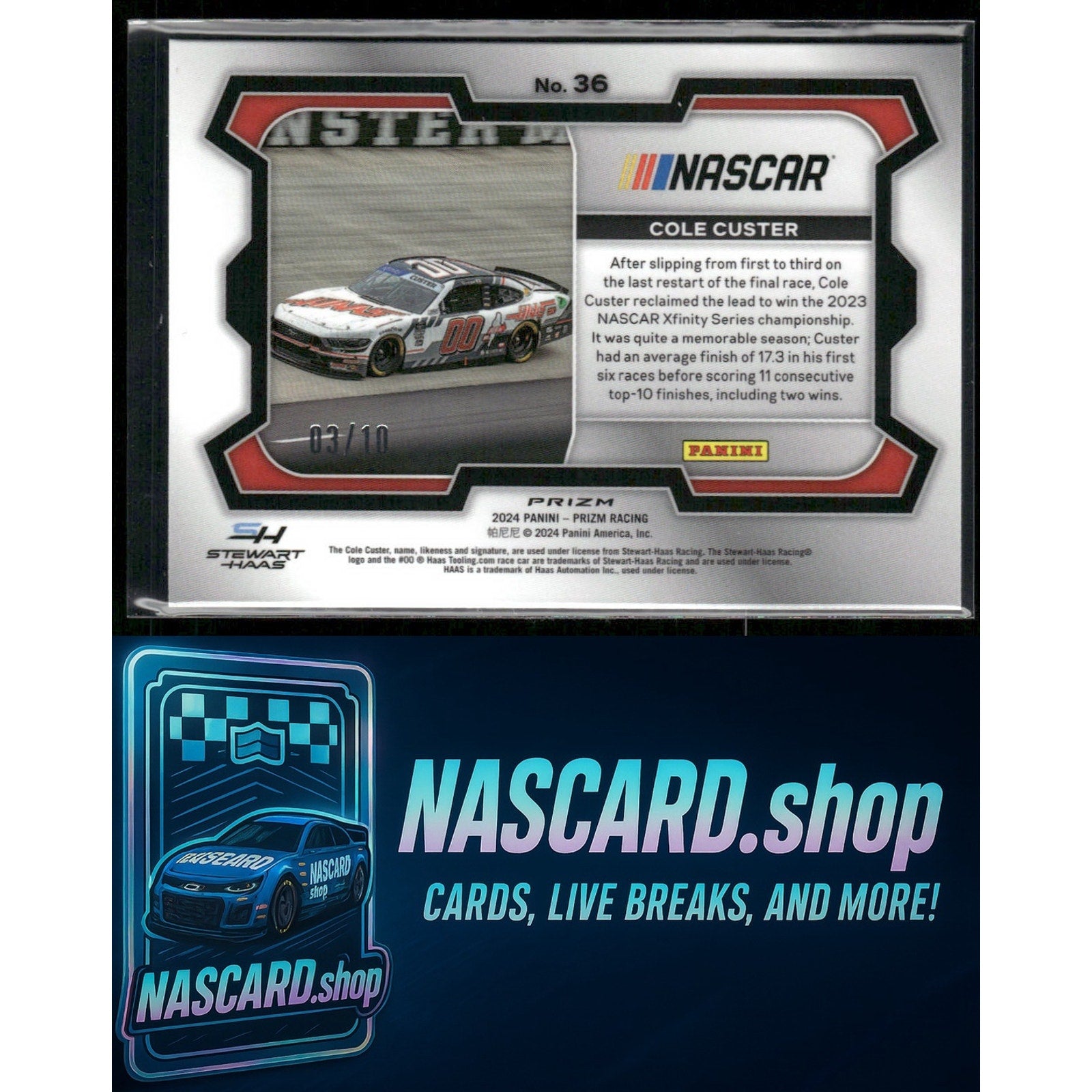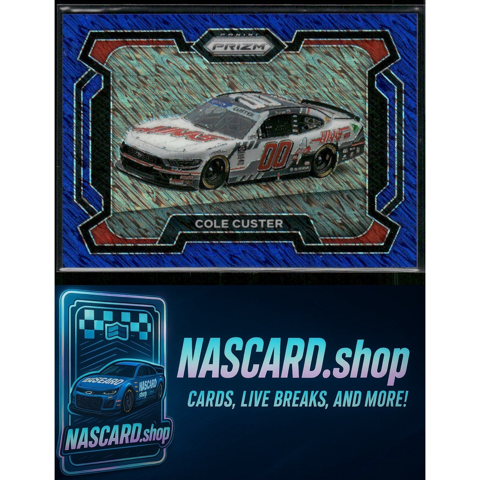 This is a nice example of a 2024 Panini Prizm #36 Cole Custer Blue Shimmer