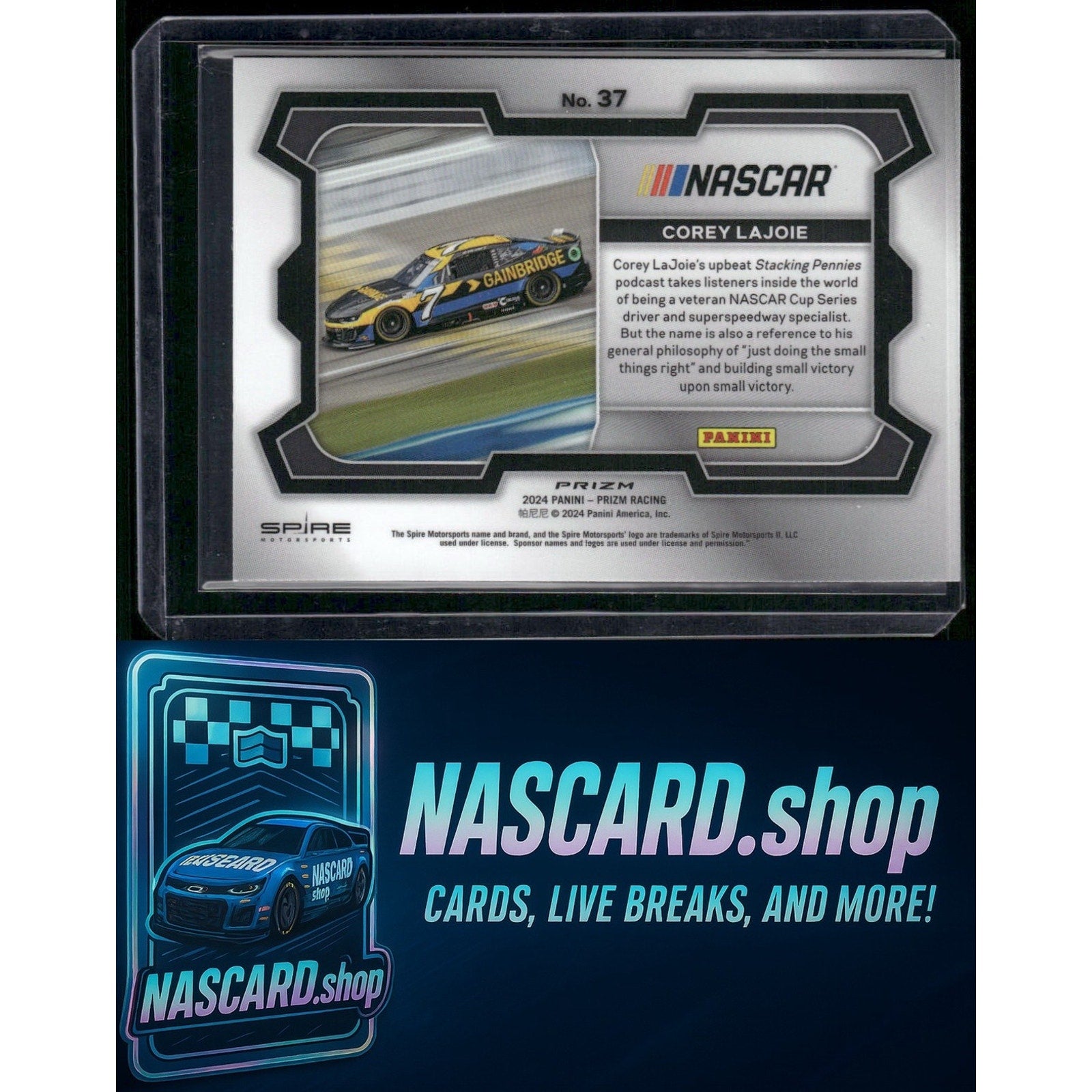 This is a nice example of a 2024 Panini Prizm #37 Corey LaJoie White Sparkle