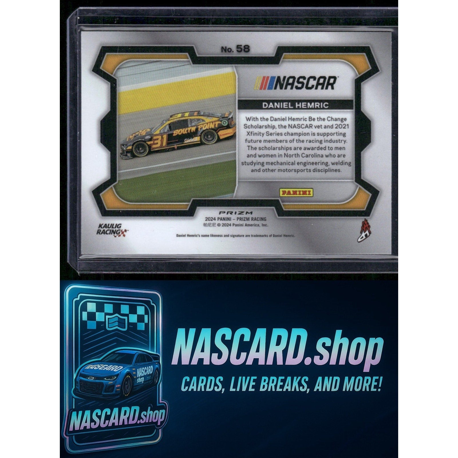 This is a nice example of a 2024 Panini Prizm #58 Daniel Hemric White Sparkle