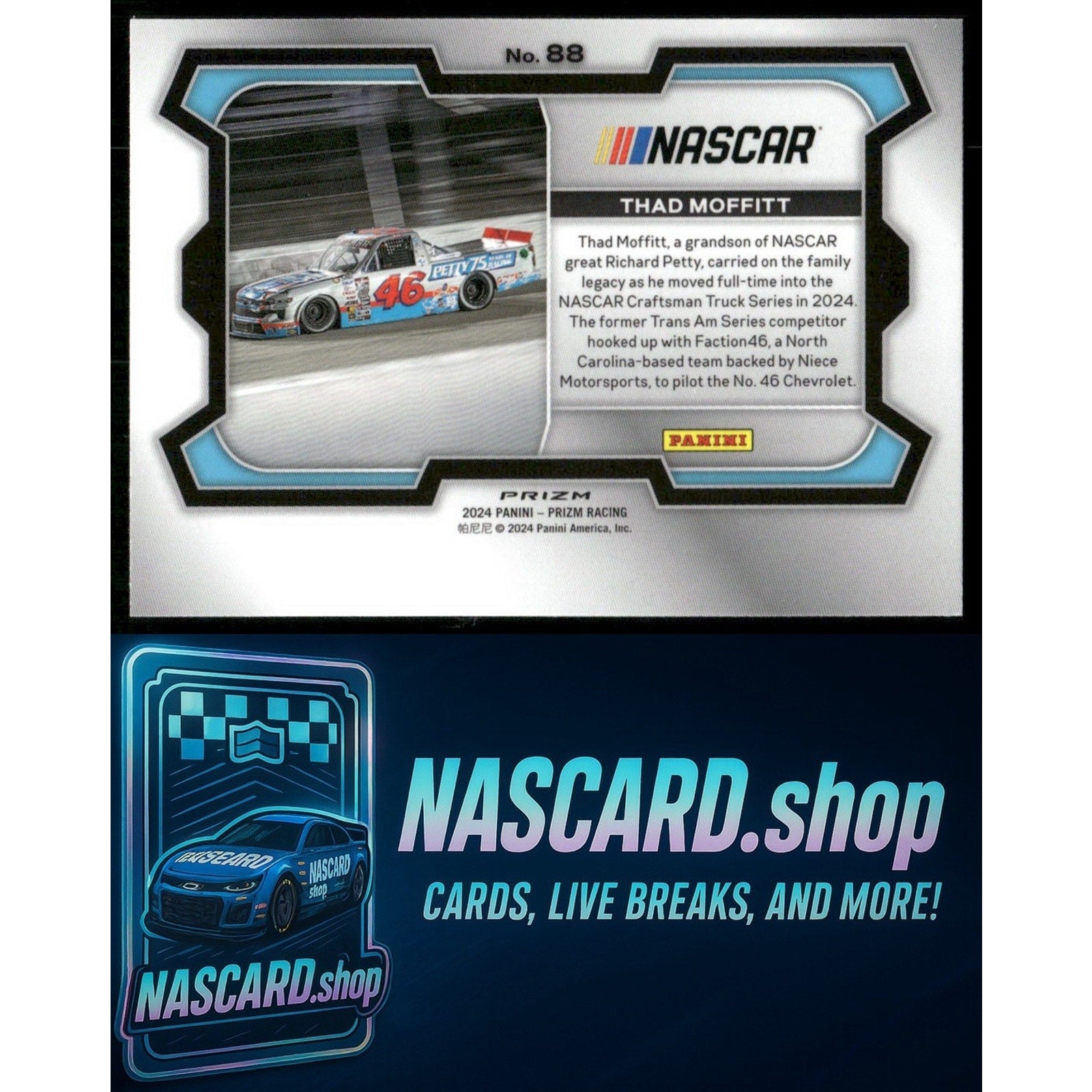 This is a nice example of a 2024 Panini Prizm #88 Thad Moffitt White Sparkle