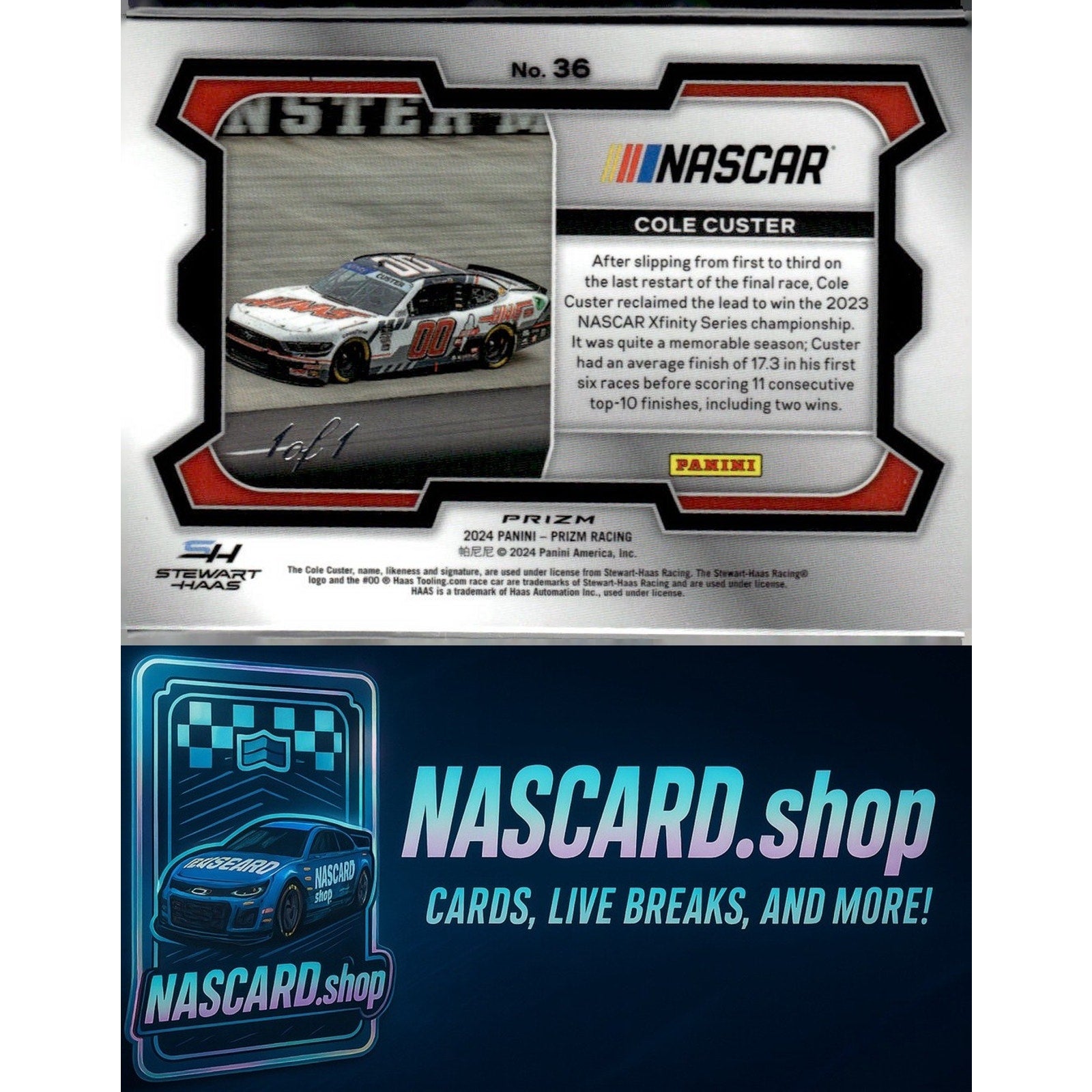 This is a nice example of a 2024 Panini Prizm #36 Cole Custer Gold Vinyl