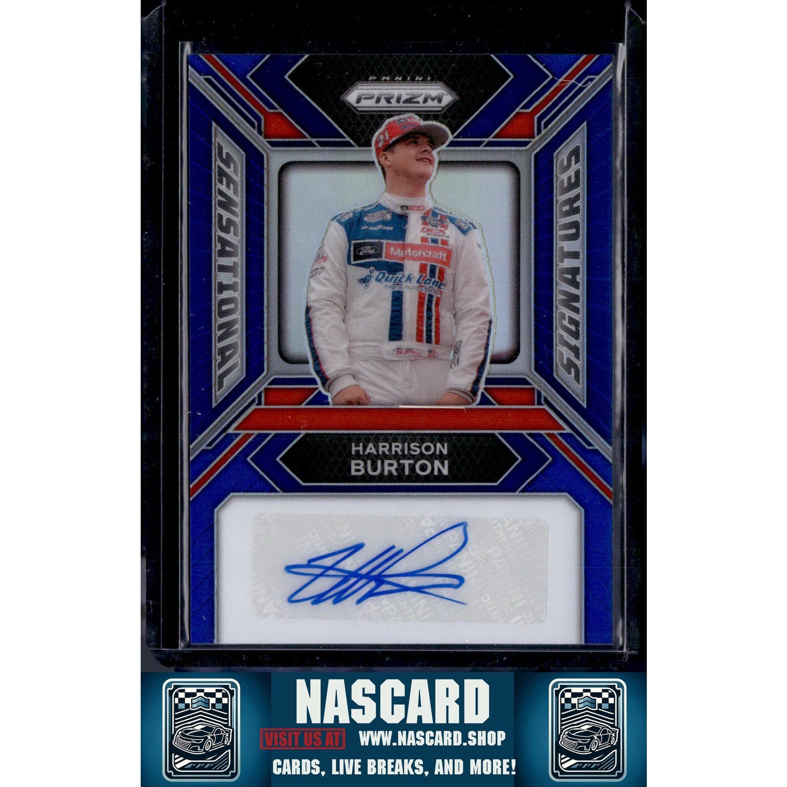 This is a nice example of a 2024 Panini Prizm #SS-HBN Harrison Burton Sensational Signatures Blue