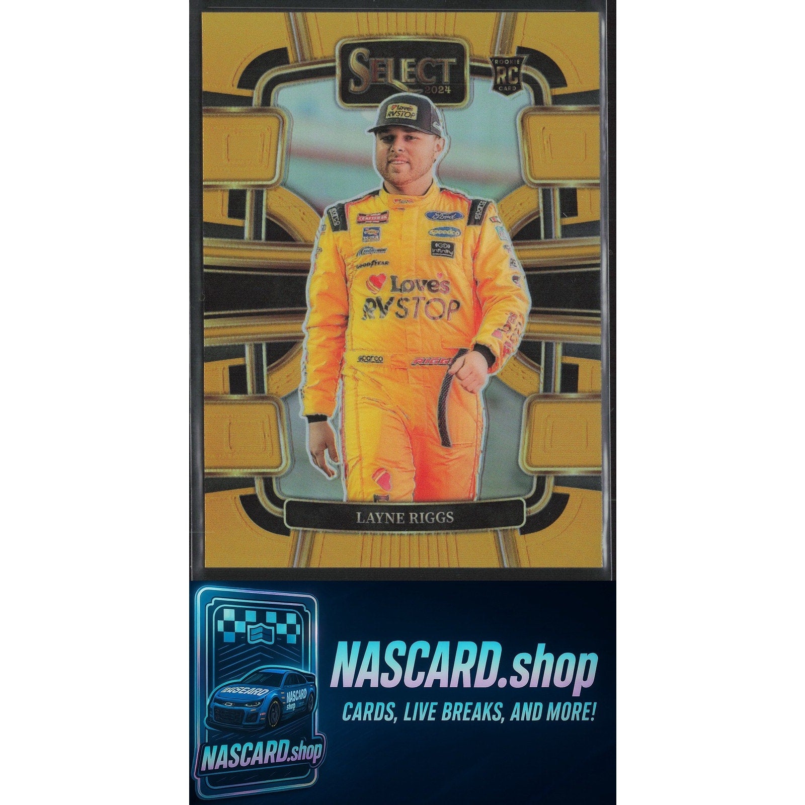 This is a nice example of a 2024 Panini Select #27 Layne Riggs Gold Prizms