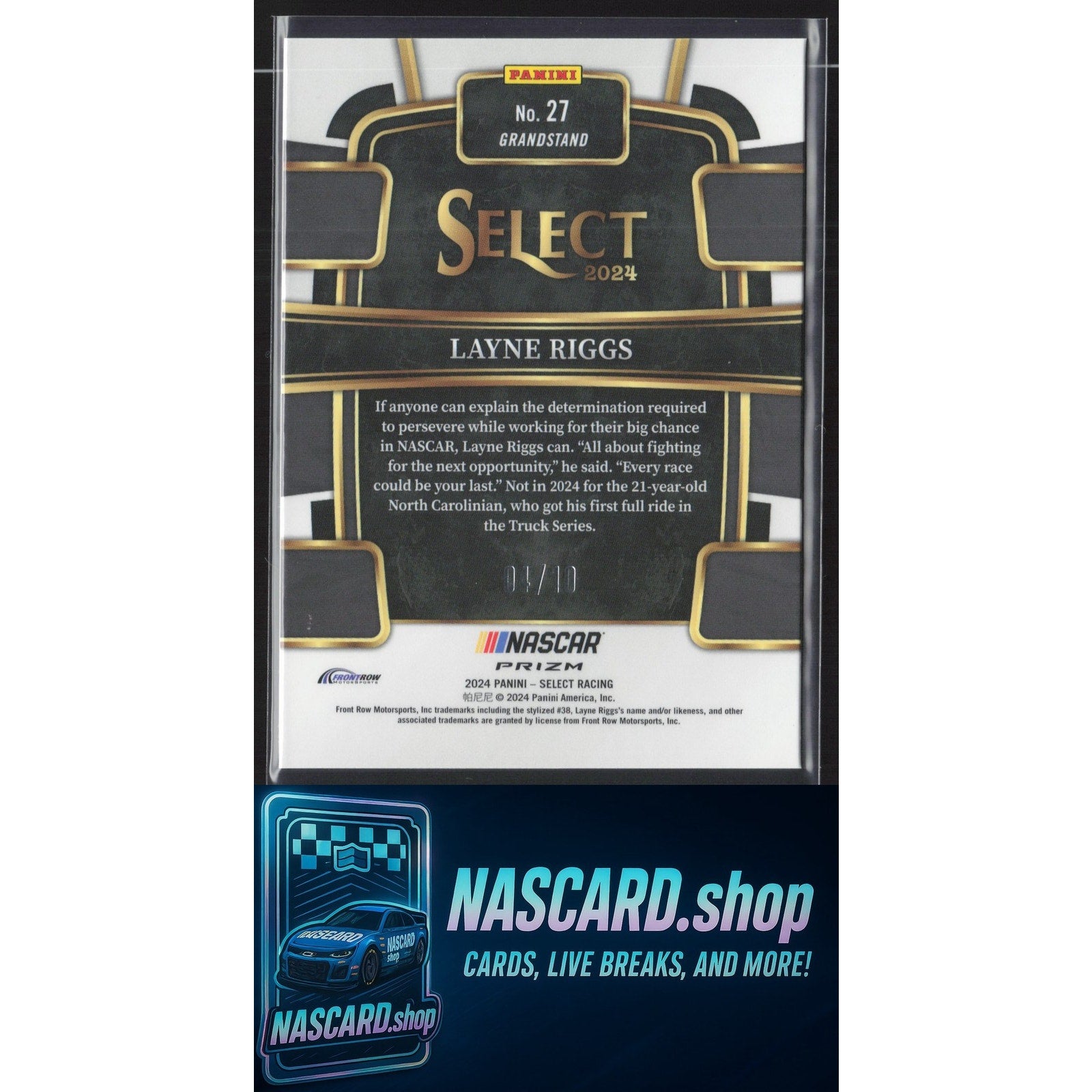 In 2024 Layne Riggs played for the Front Row Motorsports.