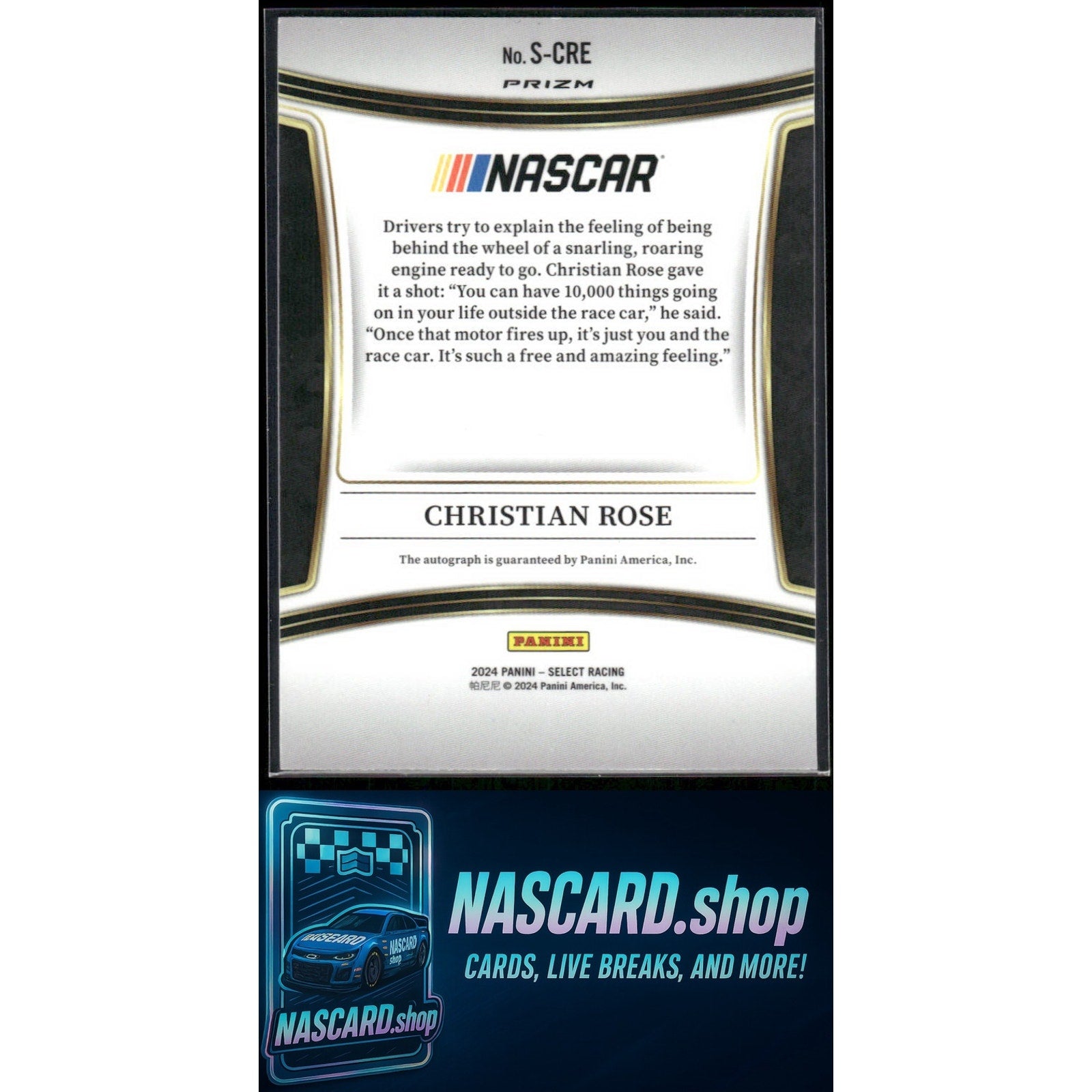 This is a nice example of a 2024 Panini Select #S-CRE Christian Rose Signatures Flash Prizms
