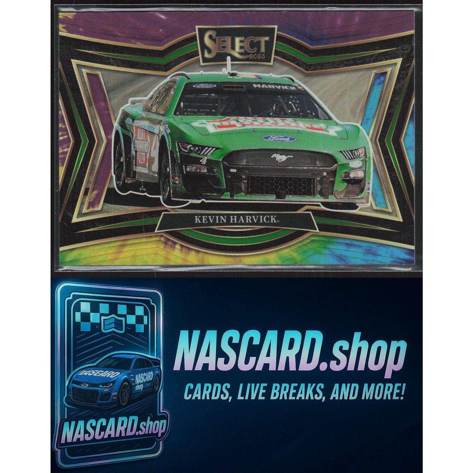 This is a nice example of a 2025 Panini Select #135 Kevin Harvick Tie-Dye Prizms