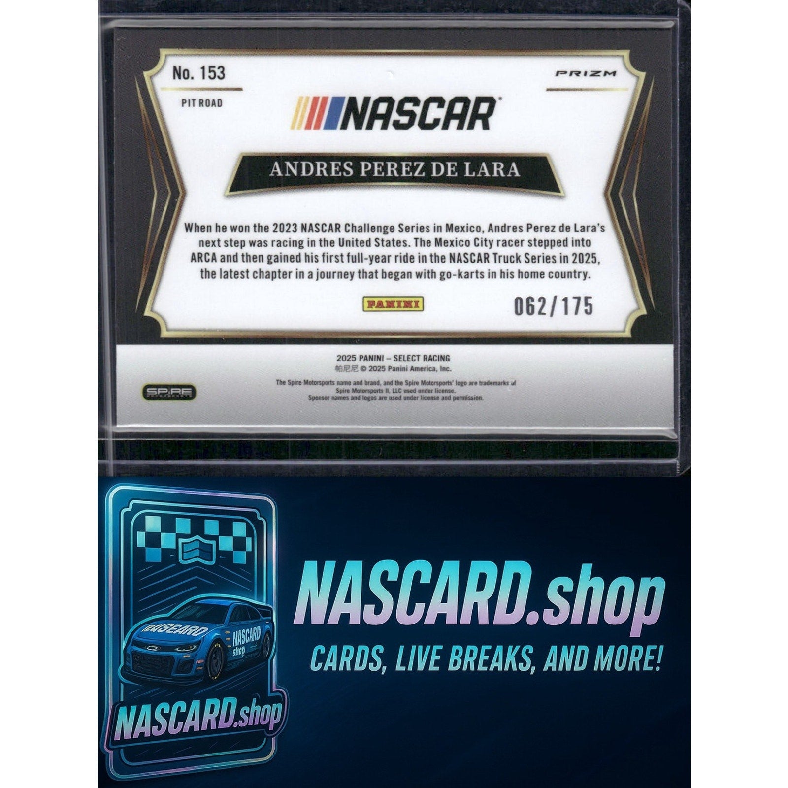 This is a nice example of a 2025 Panini Select #153 Andres Perez De Lara Blue Prizms