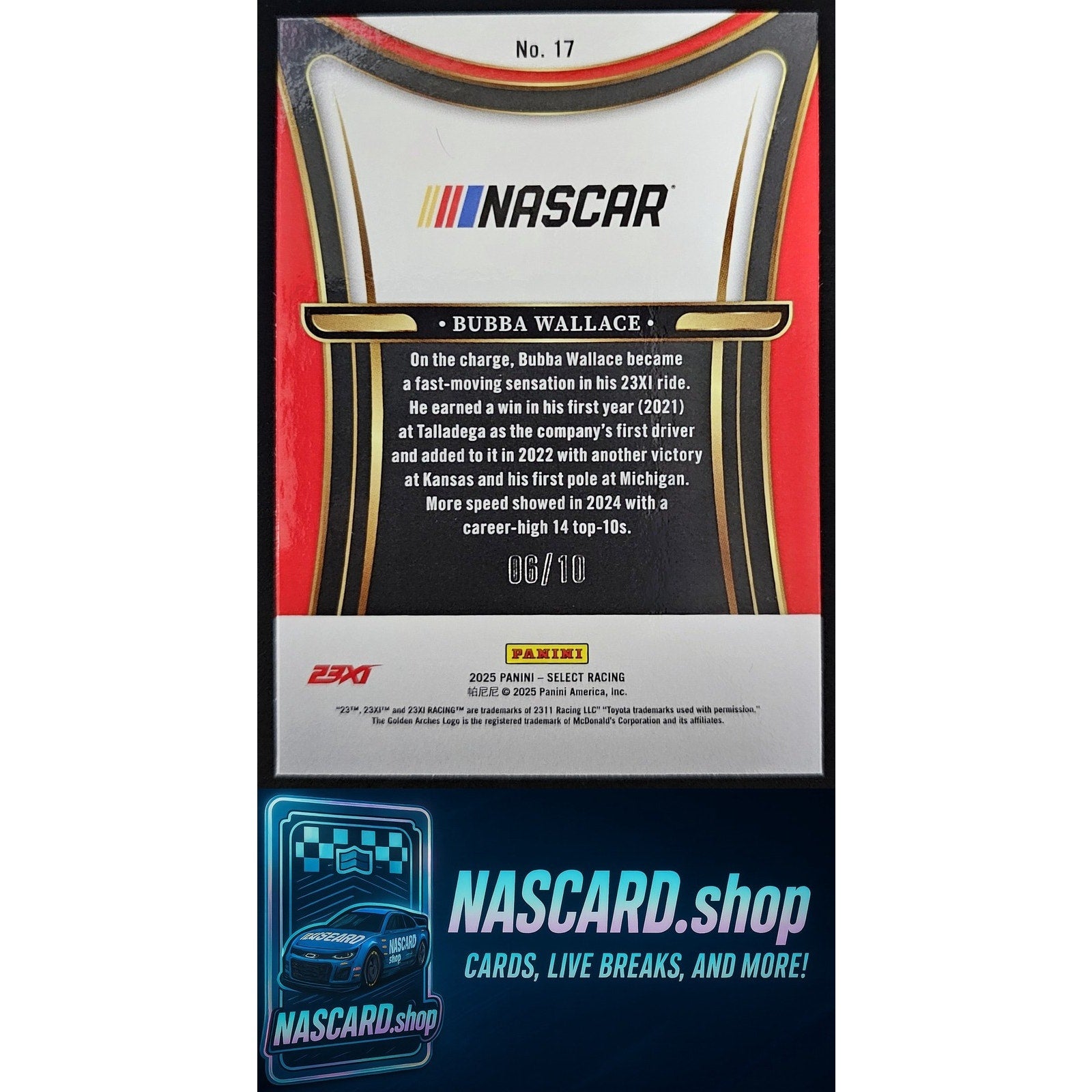 2025 Panini Select #17 Bubba Wallace Sensations Gold Prizms #/10