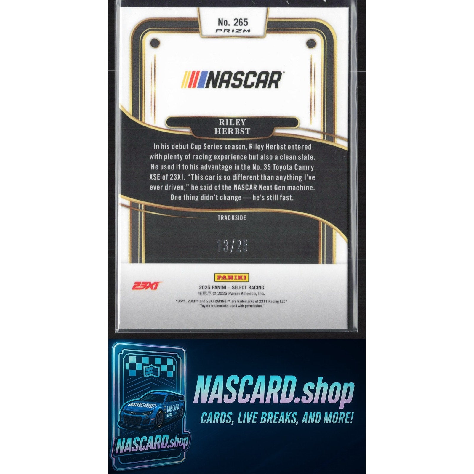 This is a nice example of a 2025 Panini Select #265 Riley Herbst Tie-Dye Prizms