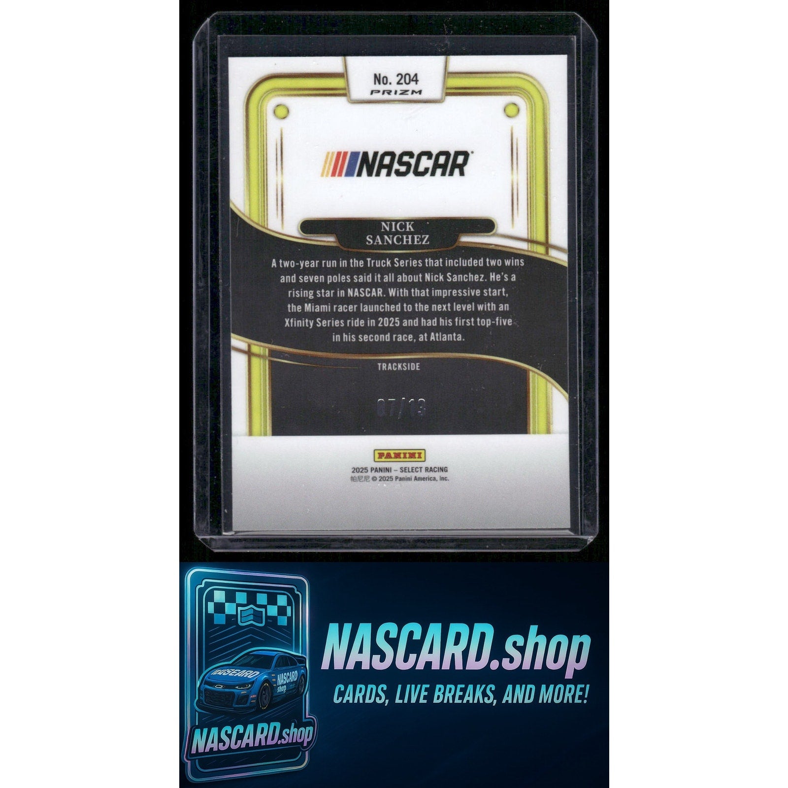 2025 Panini Select #2Trackside 04 Nick Sanchez Gold Power Plaid #/13