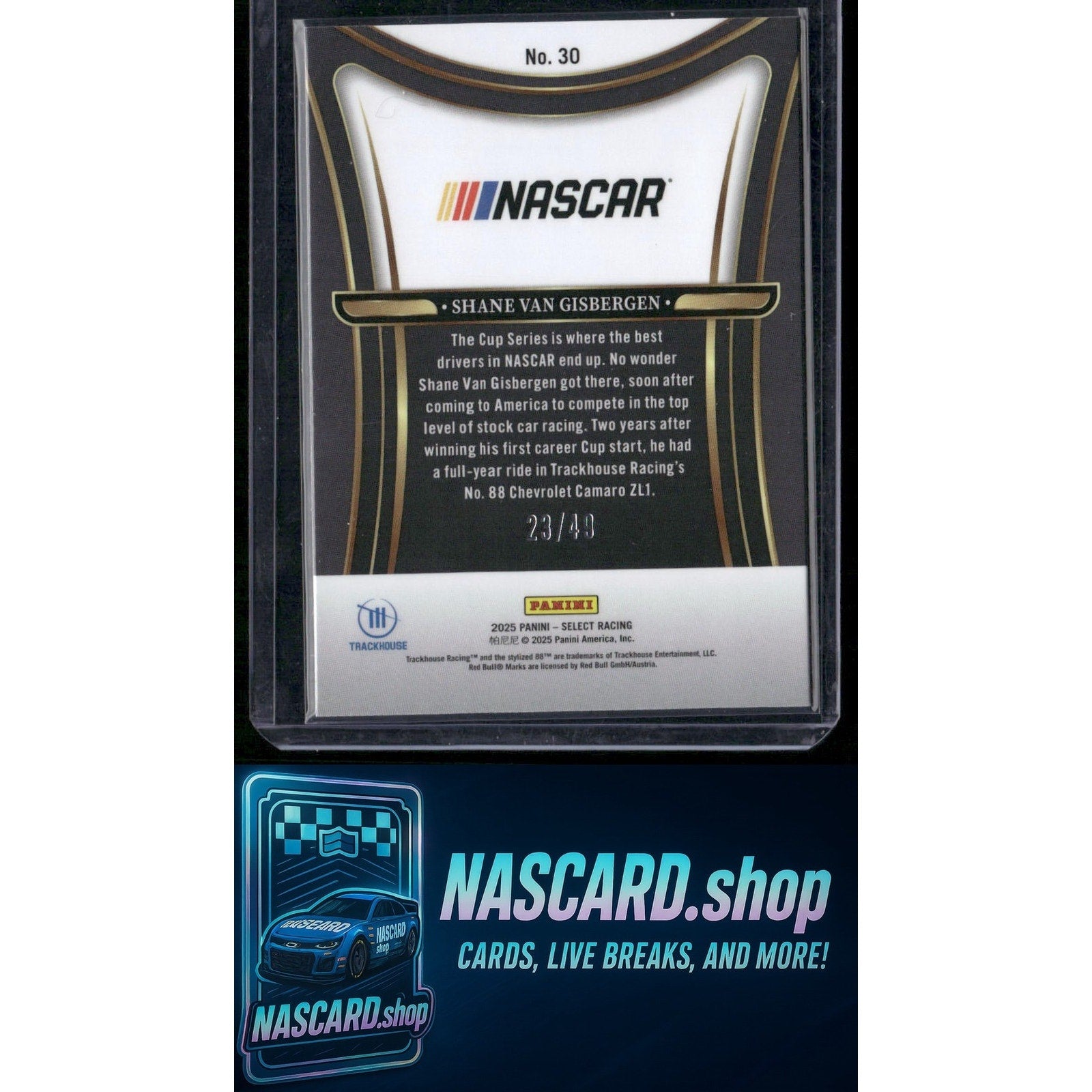 This is a nice example of a 2025 Panini Select #30 Shane Van Gisbergen Sensations Blue Prizms