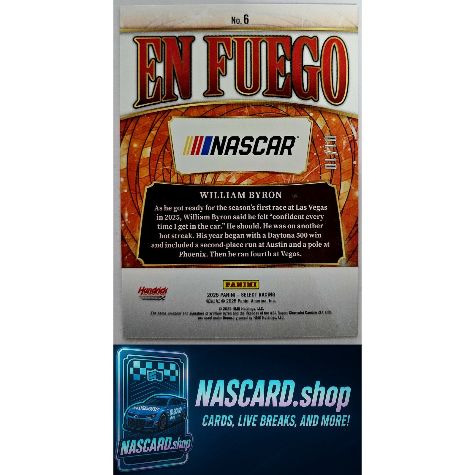 2025 Panini Select #6 William Byron En Fuego Gold Prizms #10/10