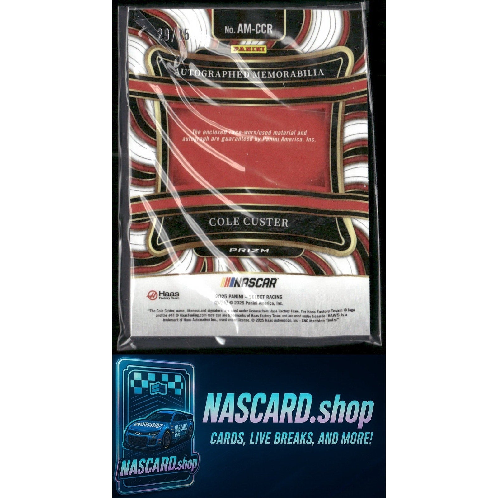 This is a nice example of a 2025 Panini Select #AM-CCR Cole Custer Autographed Memorabilia Blue Prizms