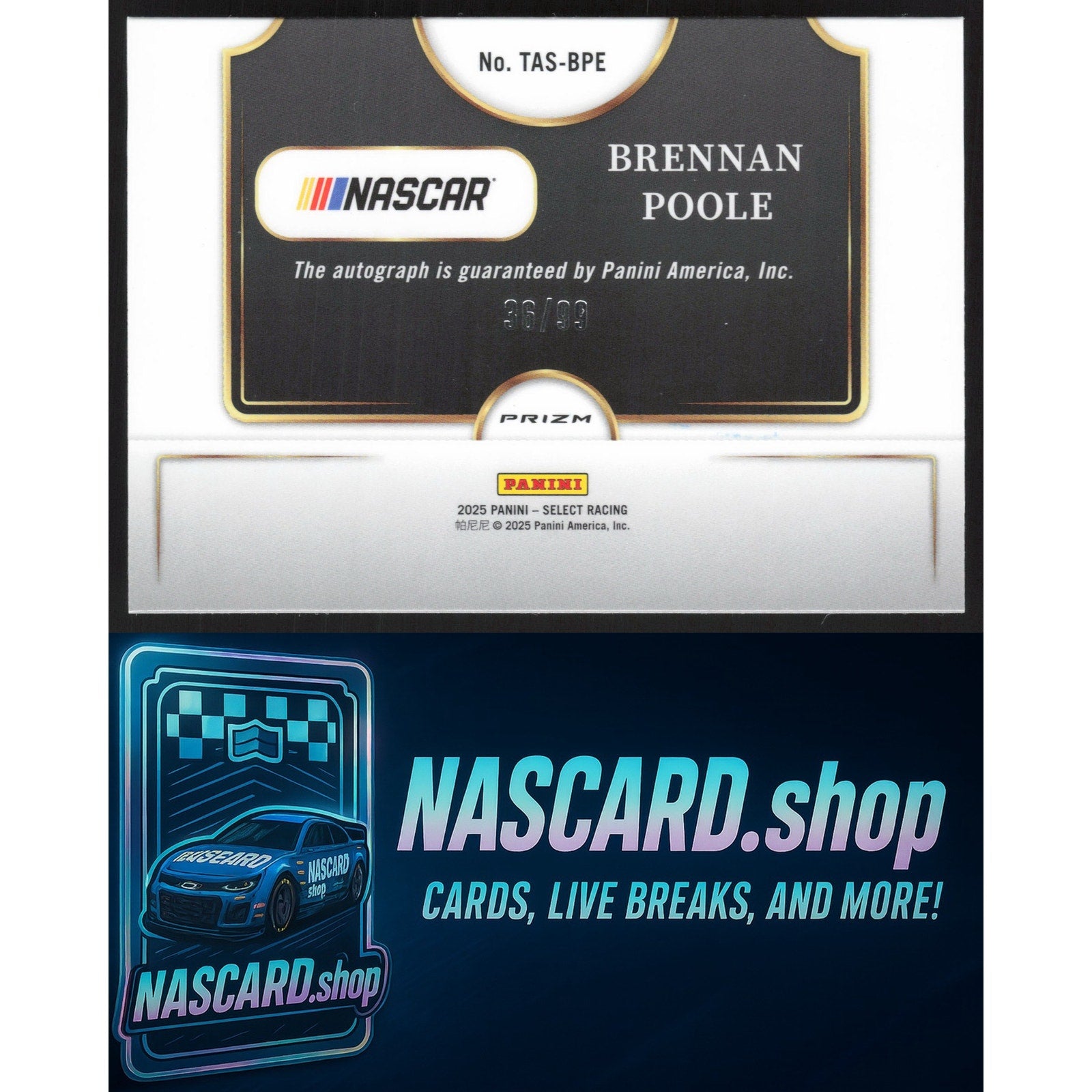 2025 Panini Select Brennan Poole Trackside Action Signatures Blue Prizms #/99