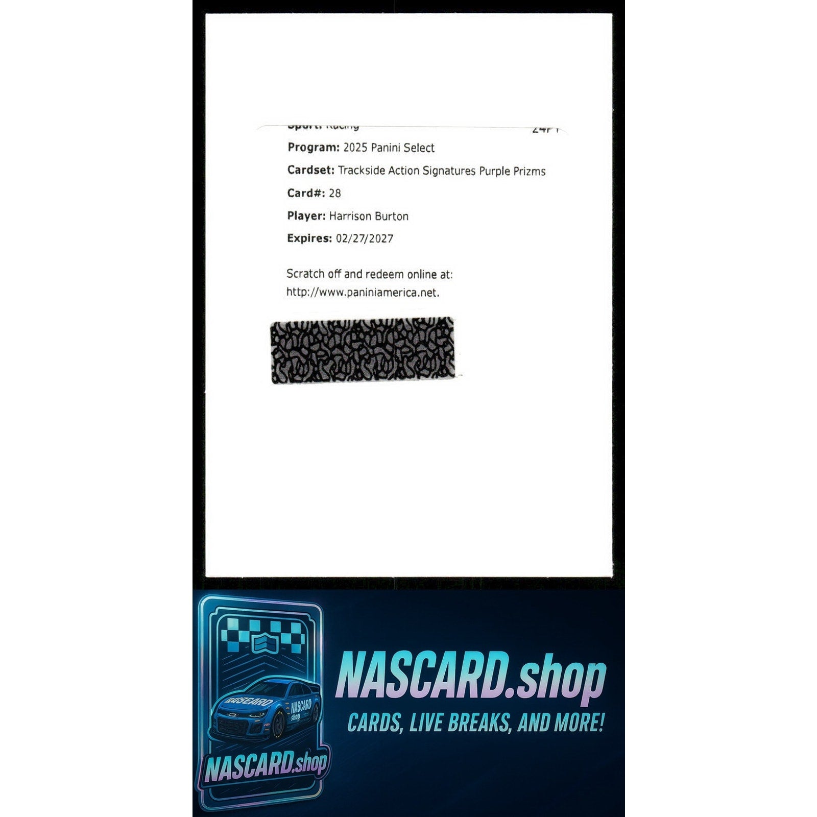 2025 Panini Select Harrison Burton Trackside Action Auto Purple /49 REDEPMTION