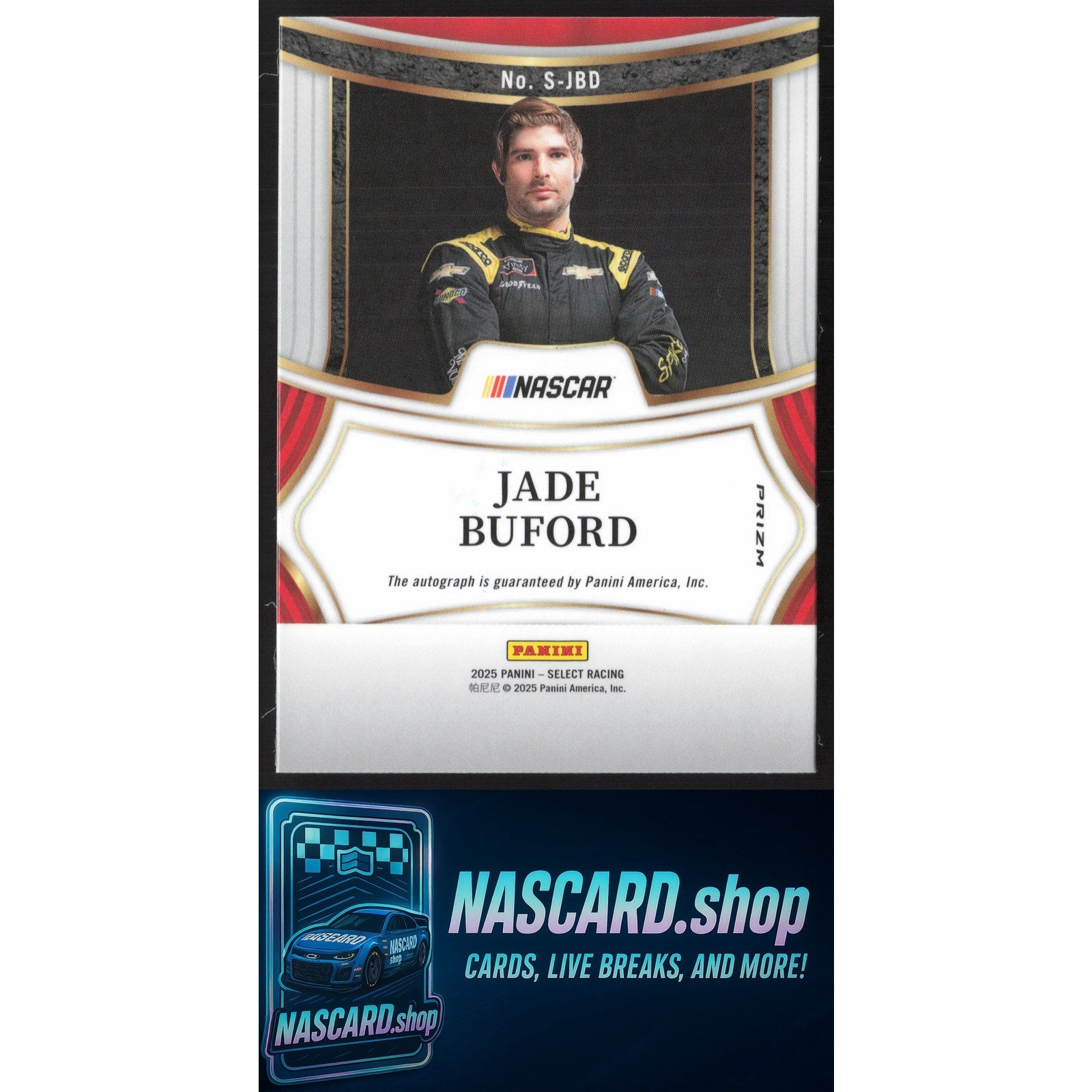 This is a nice example of a 2025 Panini Select #S-JBD Jade Buford Signatures