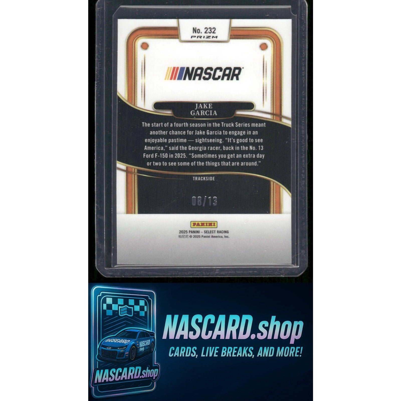 2025 Panini Select Trackside #232 Jake Garcia Gold Power Plaid #/13