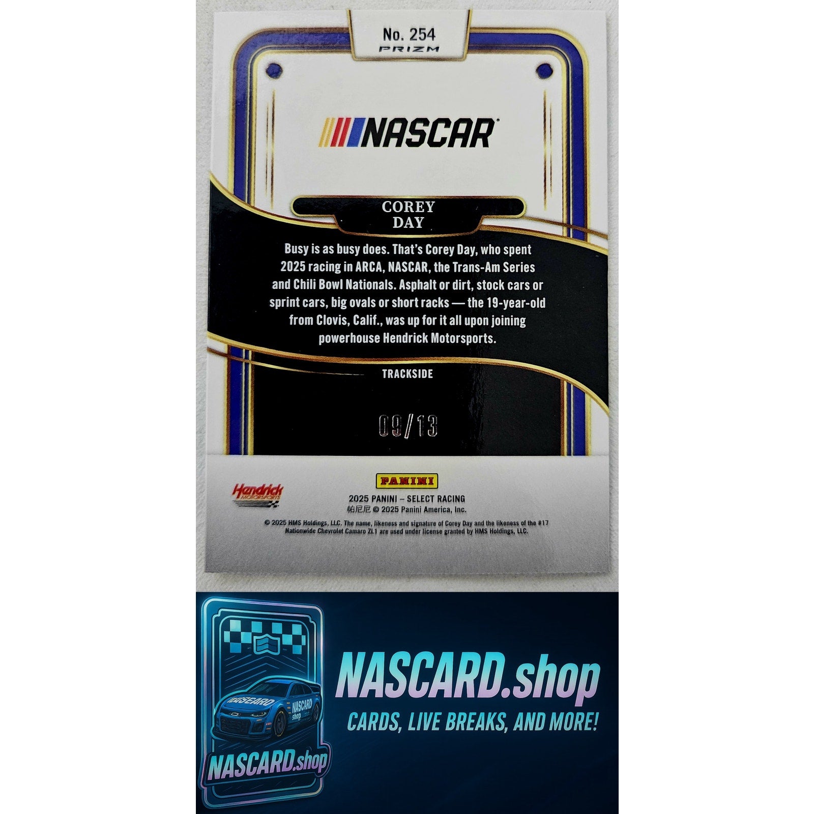 2025 Panini Select Trackside #254 Corey Day Gold Power Plaid #/13 RC