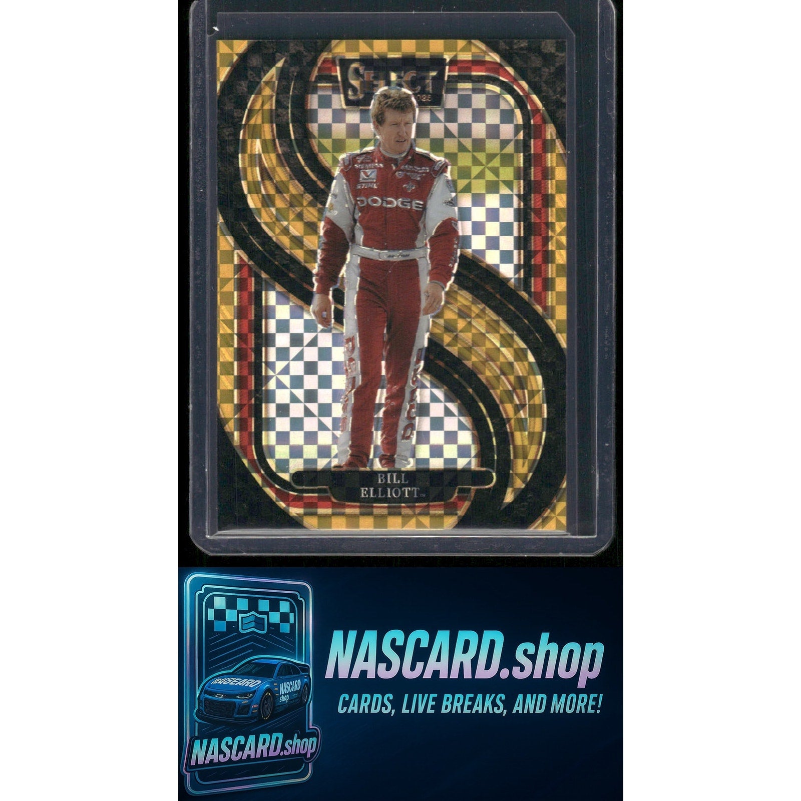 This is a nice example of a 2025 Panini Select #258 Bill Elliott Gold Power Plaid