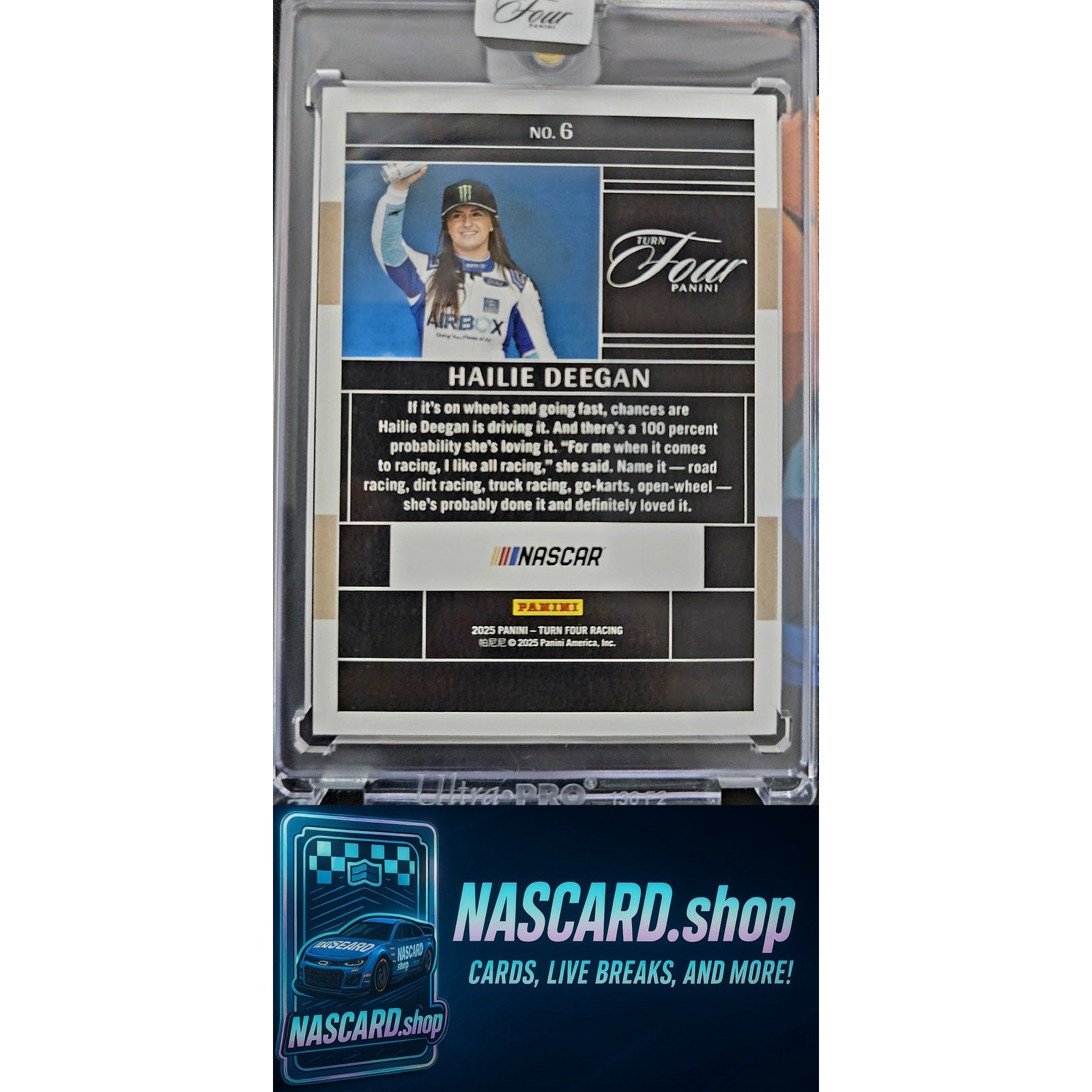 This is a nice example of a 2025 Panini Turn Four #6 Hailie Deegan Red