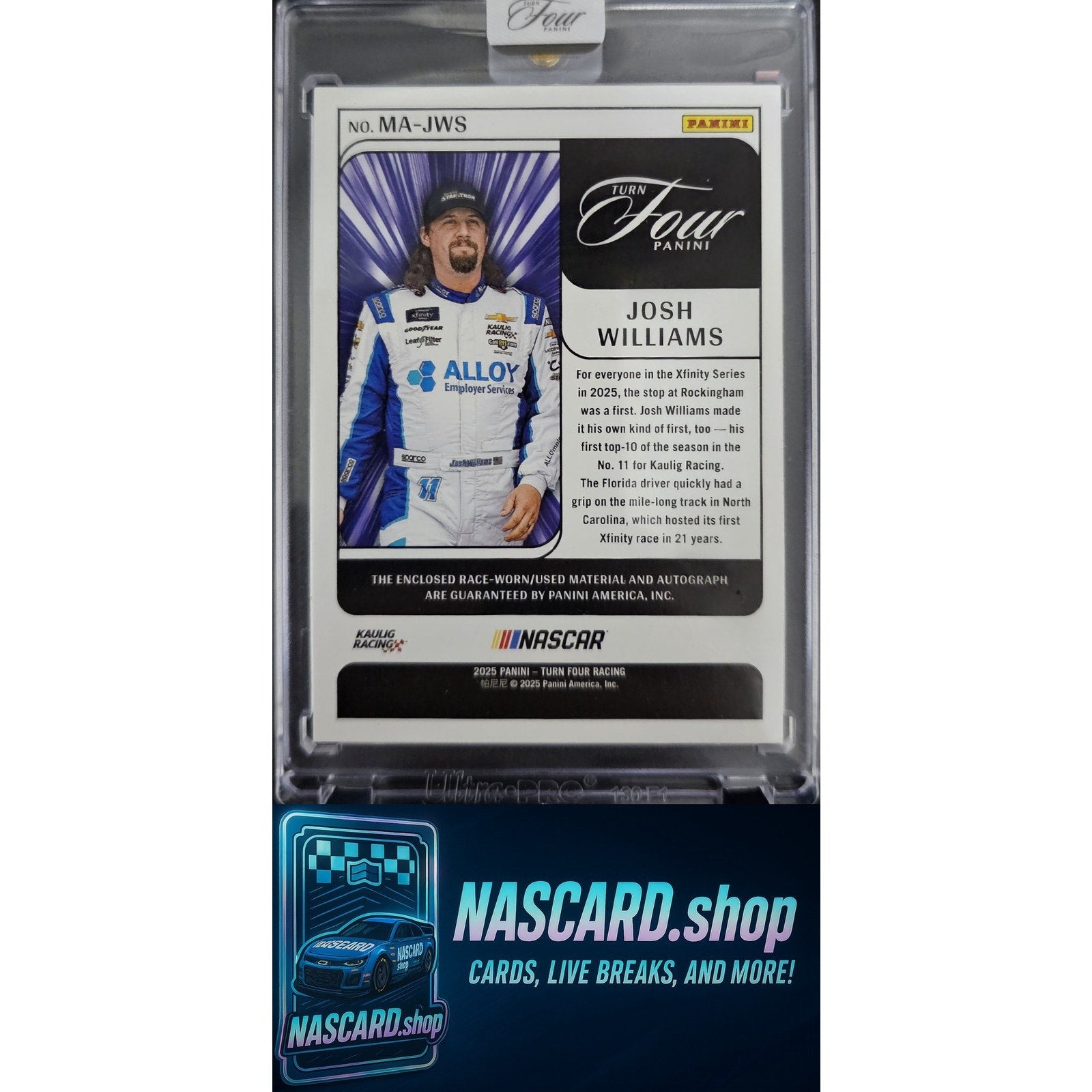 This is a nice example of a 2025 Panini Turn Four #MA-JWS Josh Williams Memorabilia Autographs Holo Gold