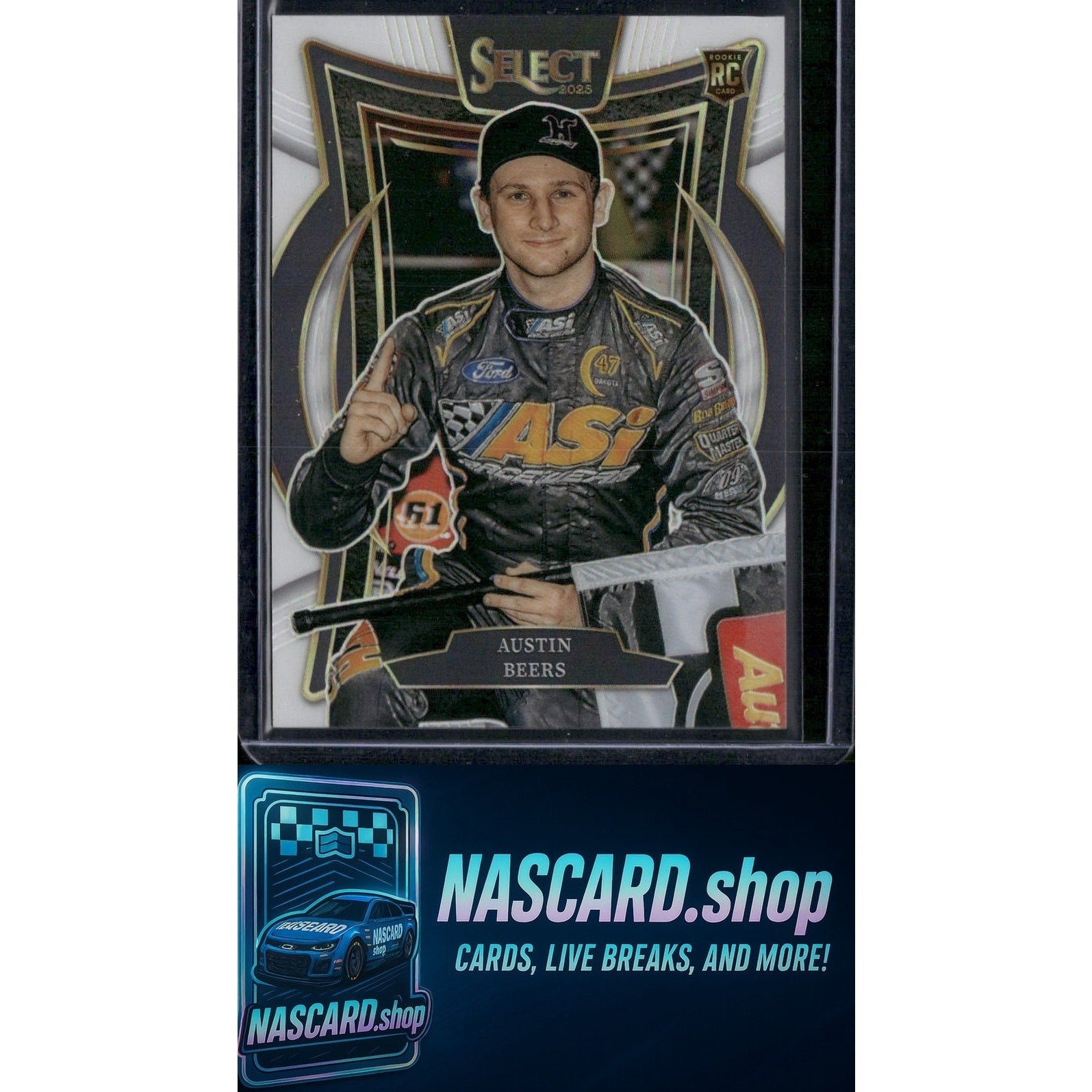 This is a nice example of a 2025 Select Racing #14 Austin Beers Grandstand White Prizms #/99
